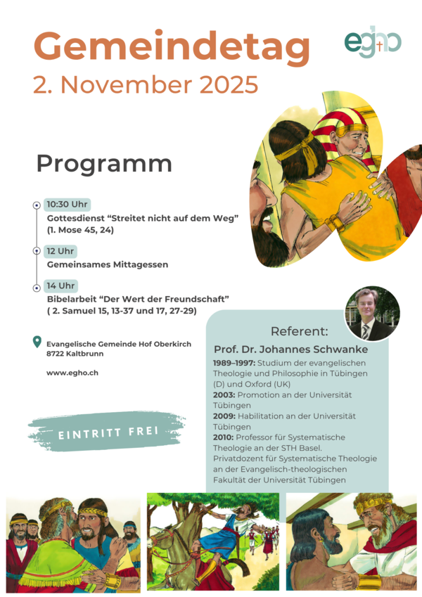 Wir laden euch herzlich ein, uns am 2. November zu einem inspirierenden Tag voller geistlicher Impulse, interessanter Gespräche und wertvollen Begegnungen zu begleiten! 🌿Zu Gast bei uns, Professor Dr. Johannes Schwanke - Professor für Systematische Theologie von der STH Basel.