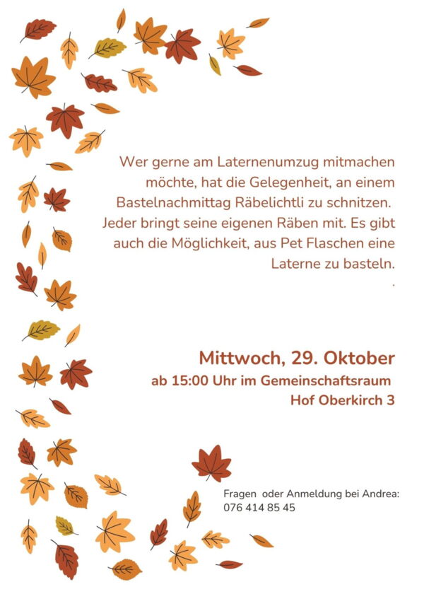 👉 Räbelichtli schnitzen – Jeder bringt seine eigene Rübe mit. 🥕✨